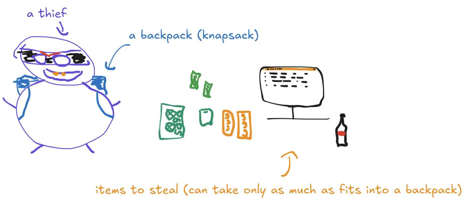 Imagine you are a thief and you just broke into a place with many valuable things inside. You have a knapsack that can carry up to 10 kilograms. You want to maximize the value of things you steal. Ideally, you'd just take all of them. But if you put more than 10kg to your knaspack, it will break and you will get away with nothing. Alternatively, you can use some heuristics to pick the items (like take only small items or only green ones), but then your solution might not be optimal - you will steal some value, but perhaps less than what you could gain in an optimal choice. For your rescue, there come 0/1 knapsack solvers. There are different algorithms that compute optimal items choice within a given capacity (max weight of things in a knapsack) and given a list of items, where each of items has a value and a cost (weight). In PyTorch, this is what we actually do, which is: within a RAM budget (knapsack capacity), we choose which operations (items) should be saved to the memory to maximize the time savings in runtime (value).